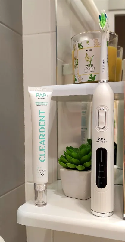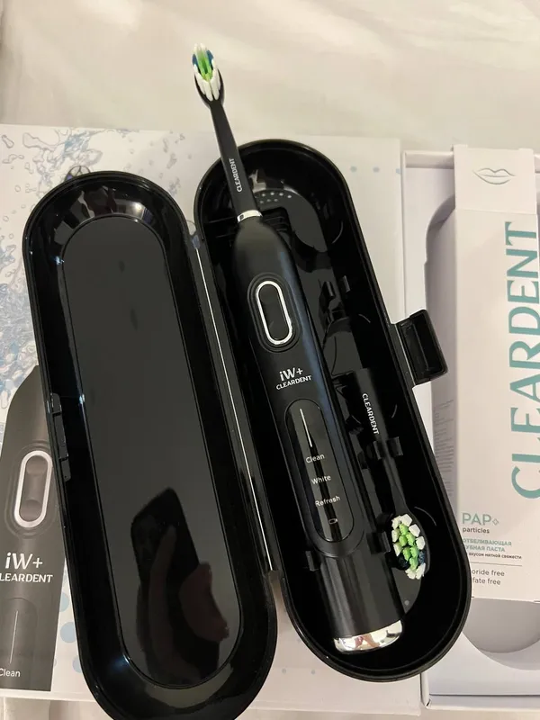 Также в наборе есть отбеливающая зубная паста PAP+, которая эффективно отбеливает зубы и позволяет отбелить пожелтевшую эмаль зубов от последствий употребления чая, кофе или курения сигарет. Использование ультразвуковой электрической зубной щетки iW+ обеспечит отбеливание зубов естественным образом, так как звуковые импульсы снимают с поверхности эмали даже самый темный налет и избавляет от зубного камня.